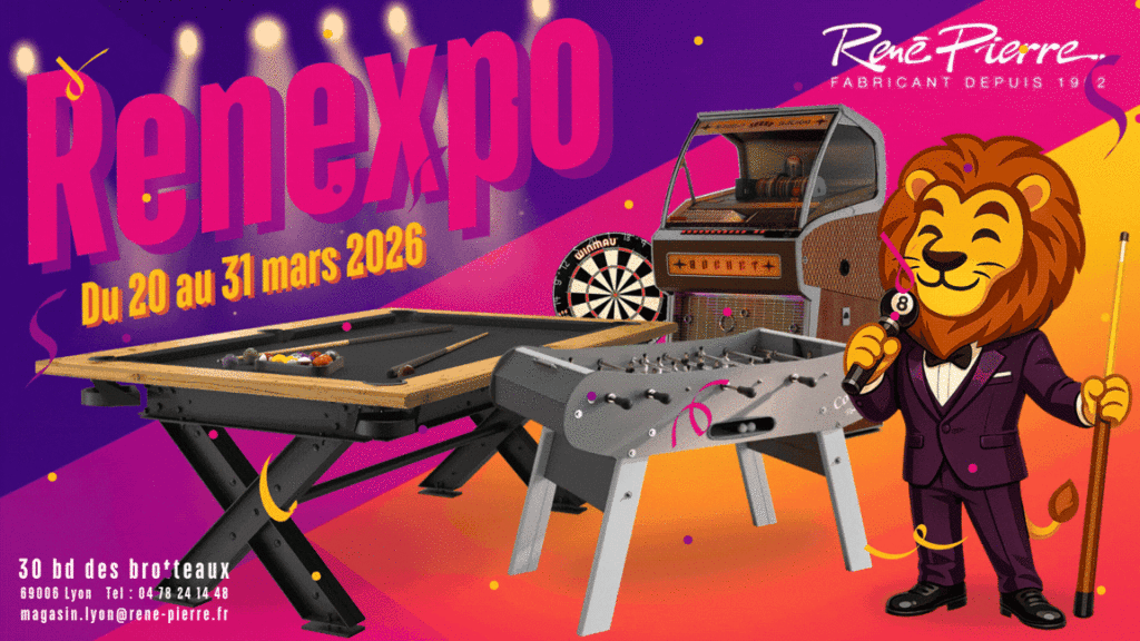 René Pierre fabrique en France des baby foot des billards et fournit des queues de billard, des accessoires et des jeux d’Arcade dans son usine de Chalon-sur-Saône depuis plus de 70 ans. Auparavant réservés aux professionnels, les baby foot et billards René Pierre sont aujourd’hui accessibles aux particuliers.