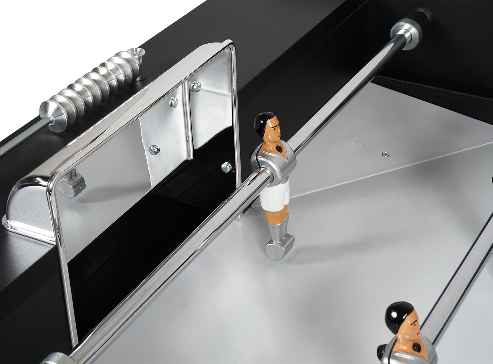 Loin d’être un jouet, ce babyfoot est conçu avec les mêmes matériaux (voir + bas) et avec le même soin que les babyfoot de style café. Seule différence : pour un encombrement moindre, des parties en 1 contre 1 et une longueur de 90 cm !