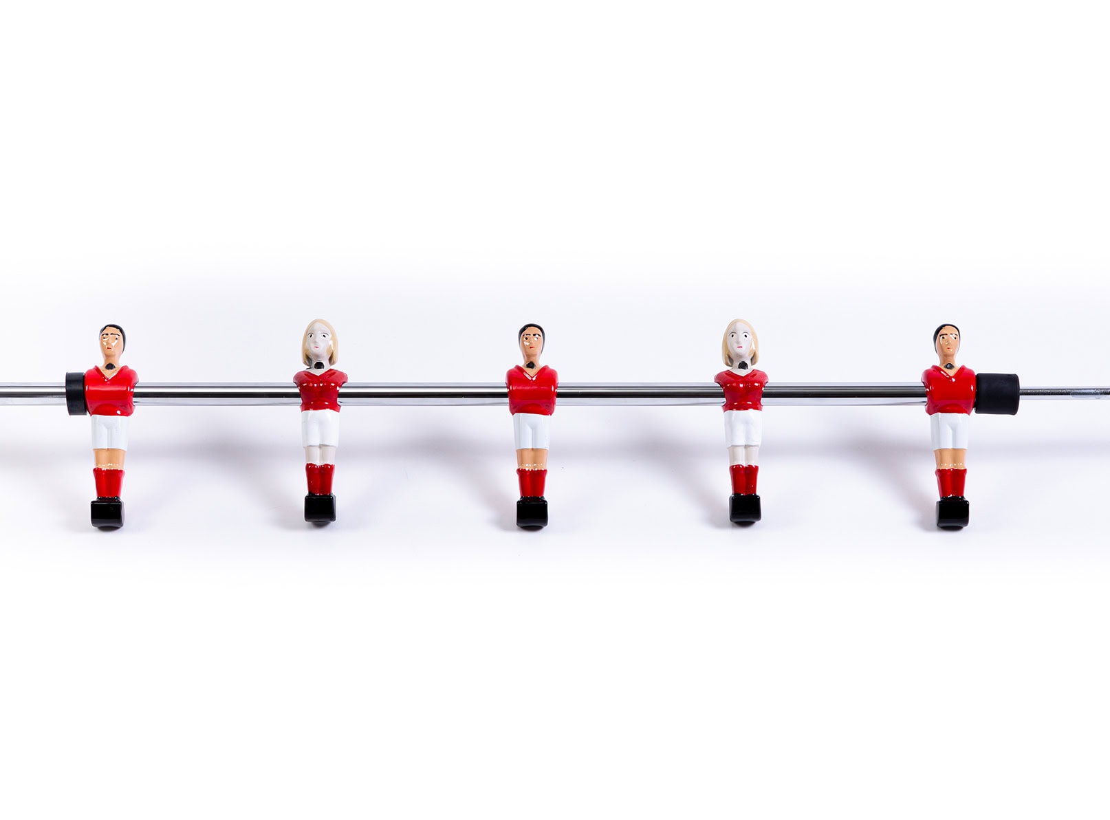 – Joueurs et joueuses en métal avec maillots rouge et bleu
