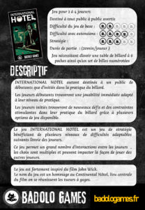 L’INTERNATIONAL HOTEL est un jeu de contrats se jouant autour d’une table de billard.